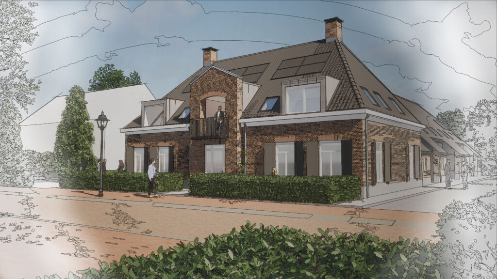 In Ruinerwold ontwikkelt Berends Bouwadvies de bestaande locatie van de Cafe Centraal aan de Dijkhuizen 53 naar 4 appartementen voor starters en senioren en 5 grondgebonden woningen voor senioren.